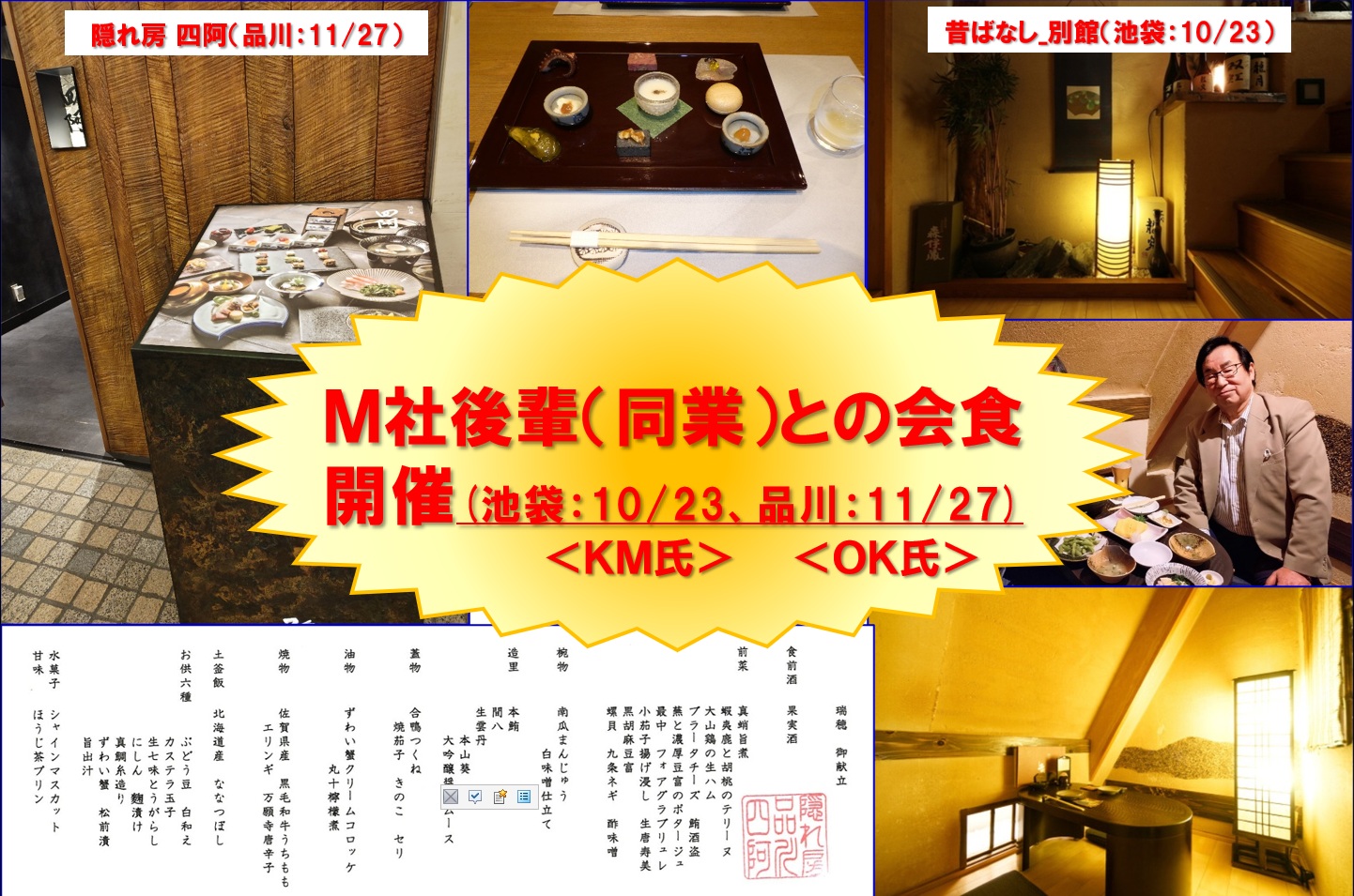 M社後輩_同業_との会食開催_池袋_10/23、品川_11/27